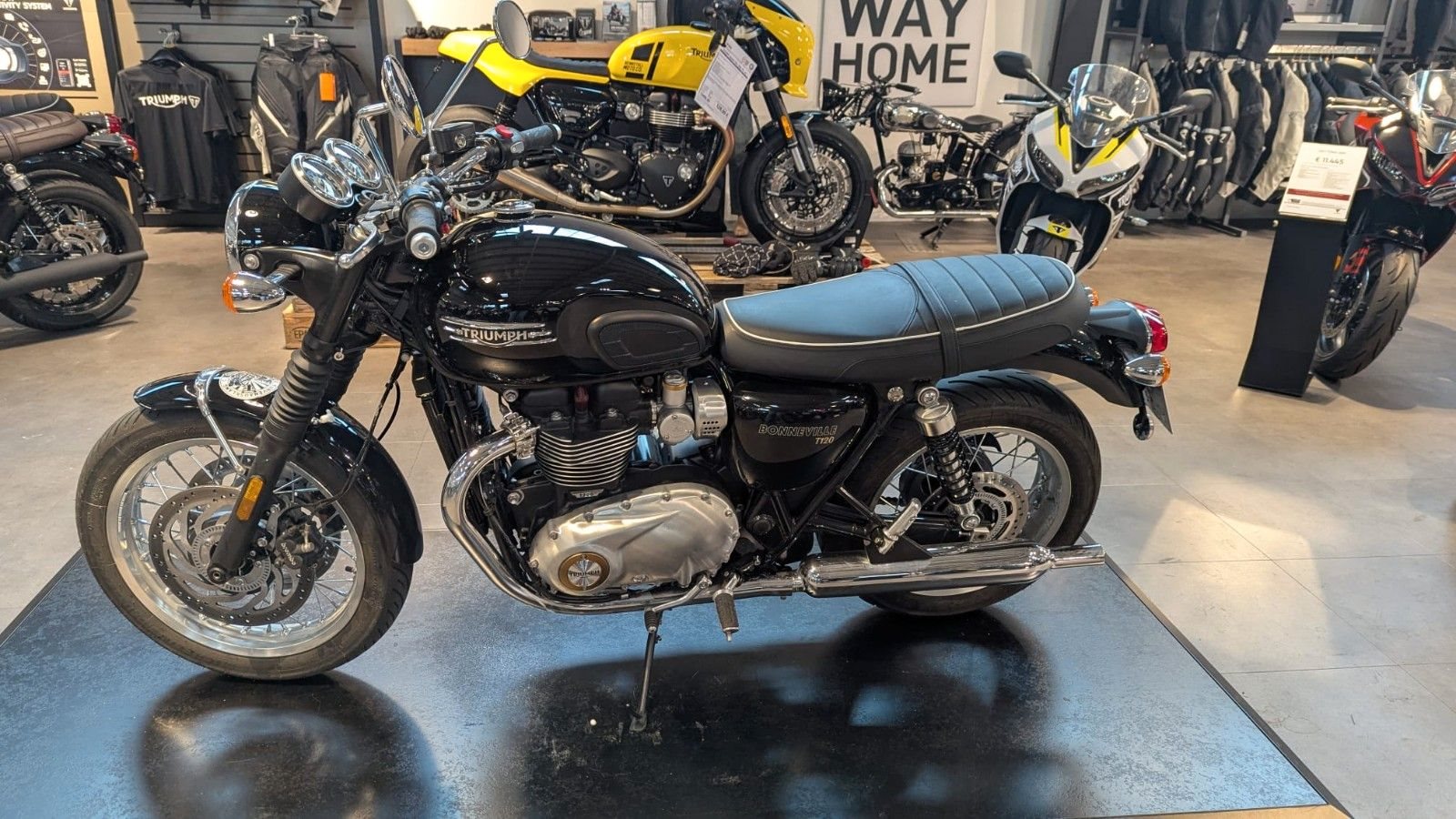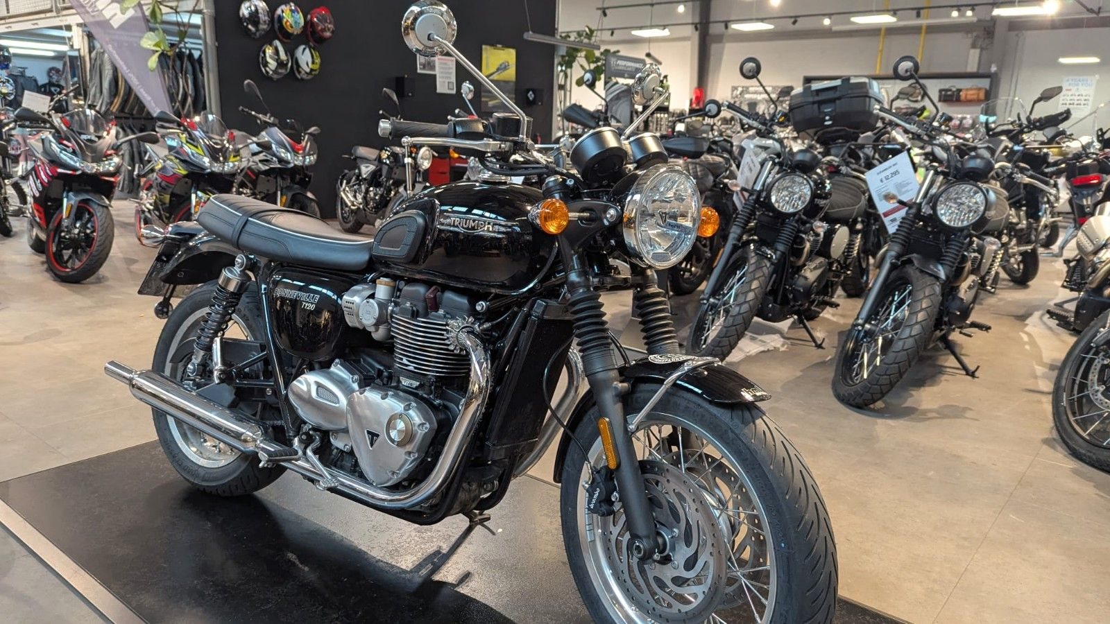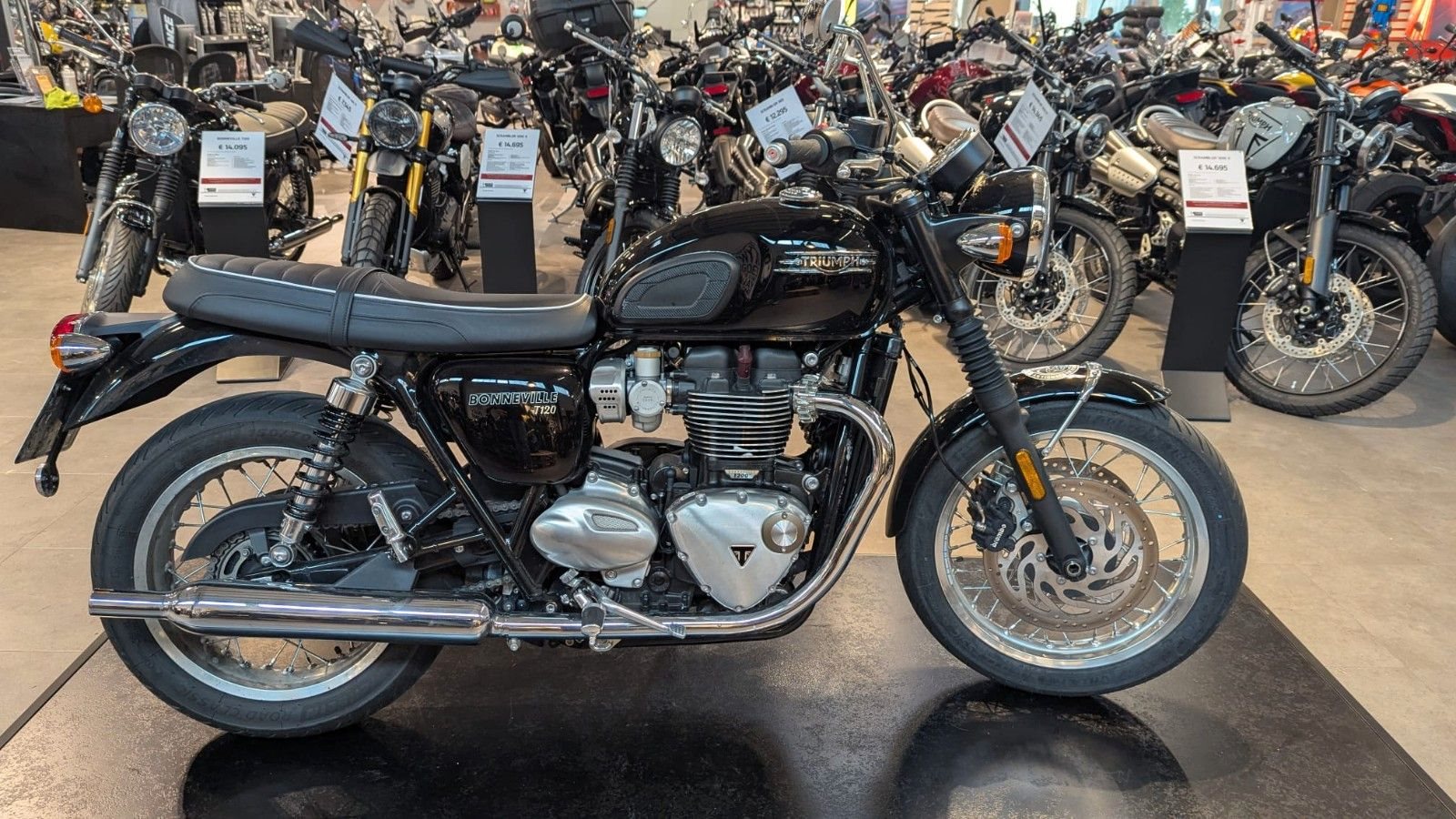 Die Triumph Bonneville T120 ist ein stilvoller Klassiker mit moderner Technik, der Eleganz und angenehme Kraft kombiniert. Ihr 1.200?cm Flüssigkeits-kühler Zweizylinder liefert etwa 80?PS bei 6.550?U/min und ein Drehmoment von rund 105?Nm bei ca. 3.500?U/min. Sie wiegt fahrbereit etwa 236?kg, hat einen komfortablen Sitzhöhenbereich von ca. 790?mm und fährt sich trotz ihres Gewichts relativ wendig durch ihr ausgewogenes Fahrwerk und die klassische Rahmen-Geometrie. Mit spoked Rädern, 6-Gang-Getriebe, modernen Assistenzsystemen wie ABS und einem Tankvolumen von ~14,5?Litern bietet sie Komfort für Alltag und Touren gleichermaßen. Visuell besticht sie durch Retro-Elemente wie Rundscheinwerfer, verchromte Auspuffrohre paarweise ("2-into-2") und klassische Farbvarianten, die den Vintage-Charme mit heutiger Zuverlässigkeit verbinden.