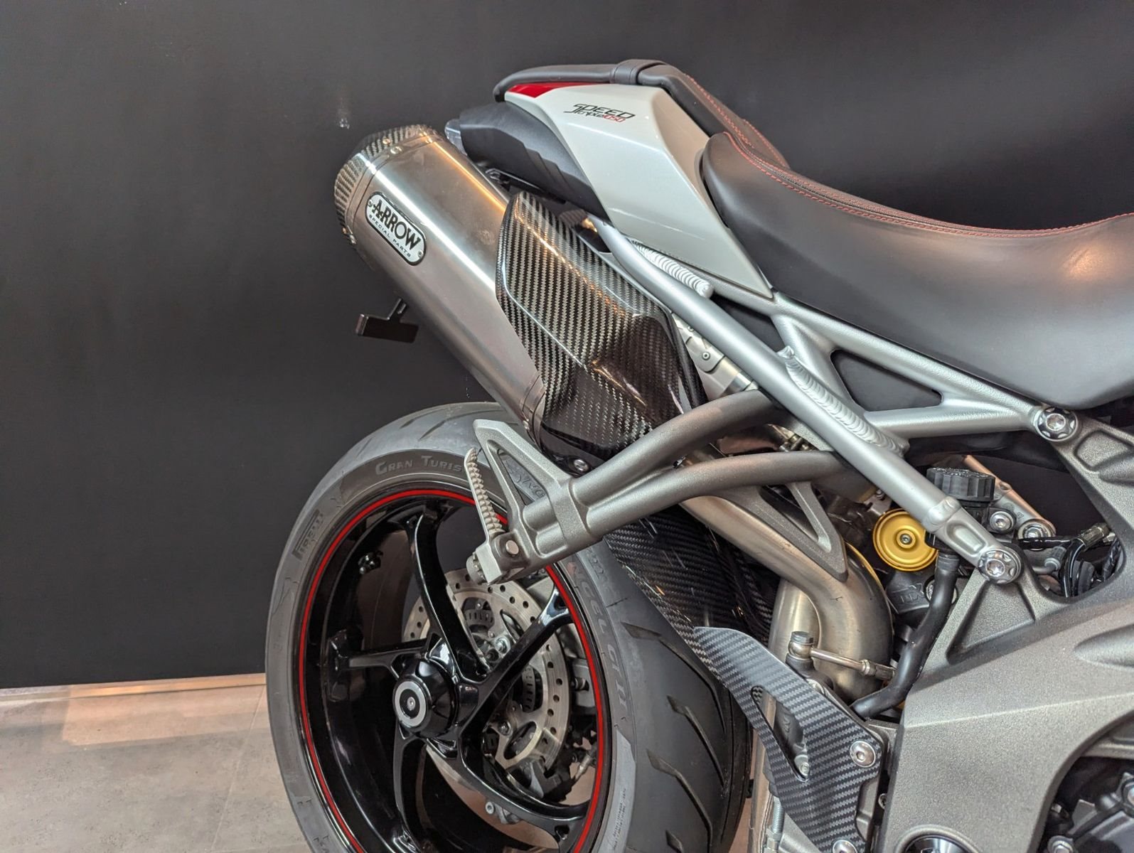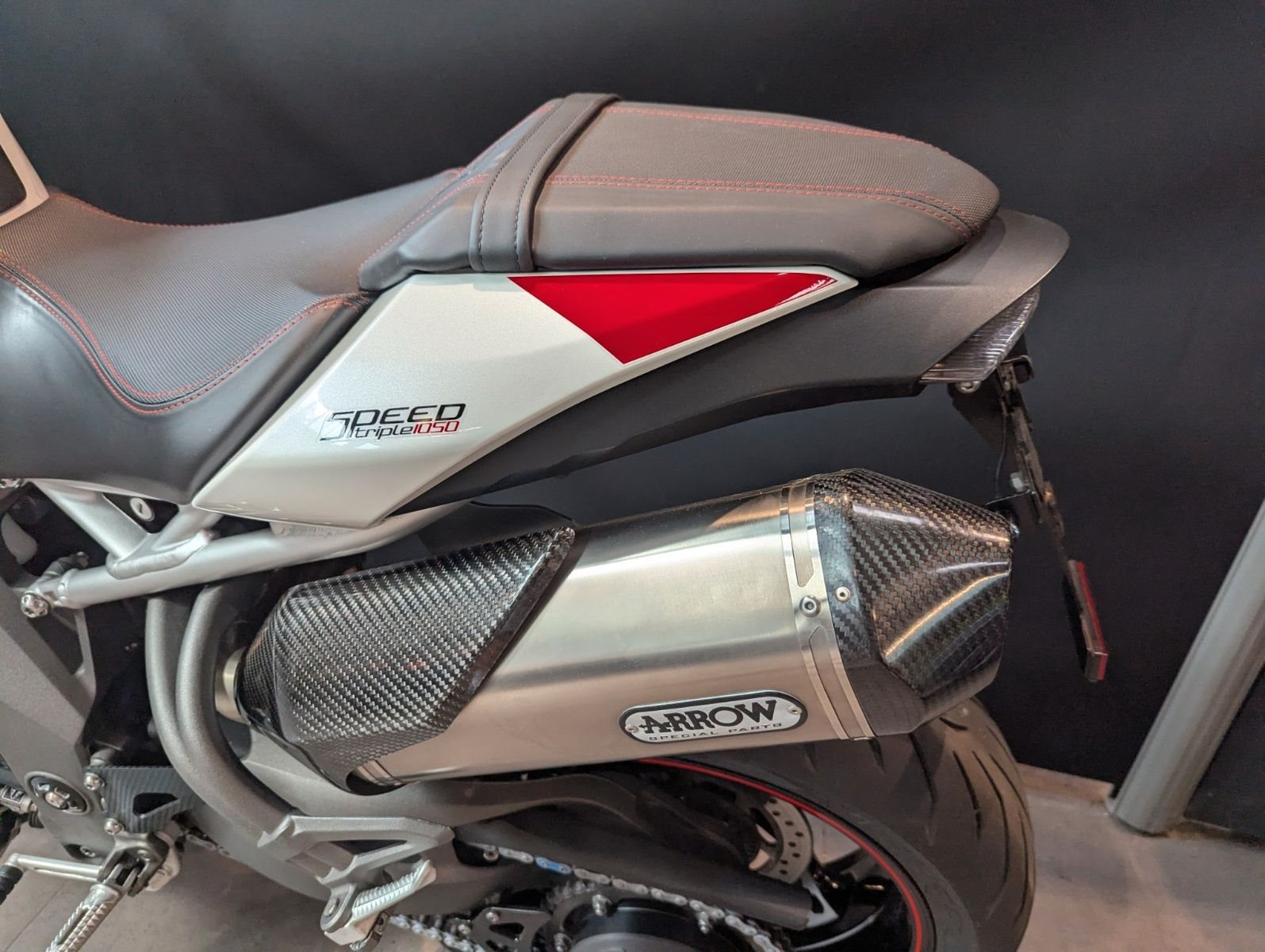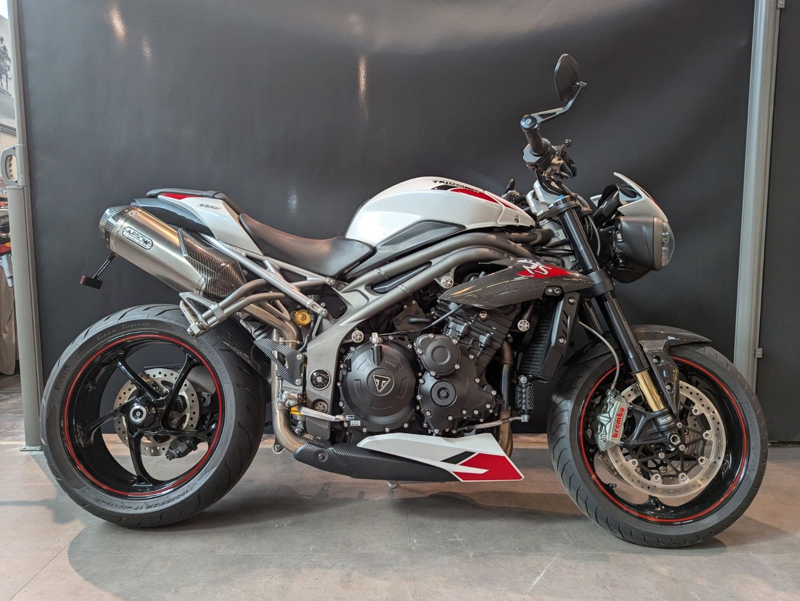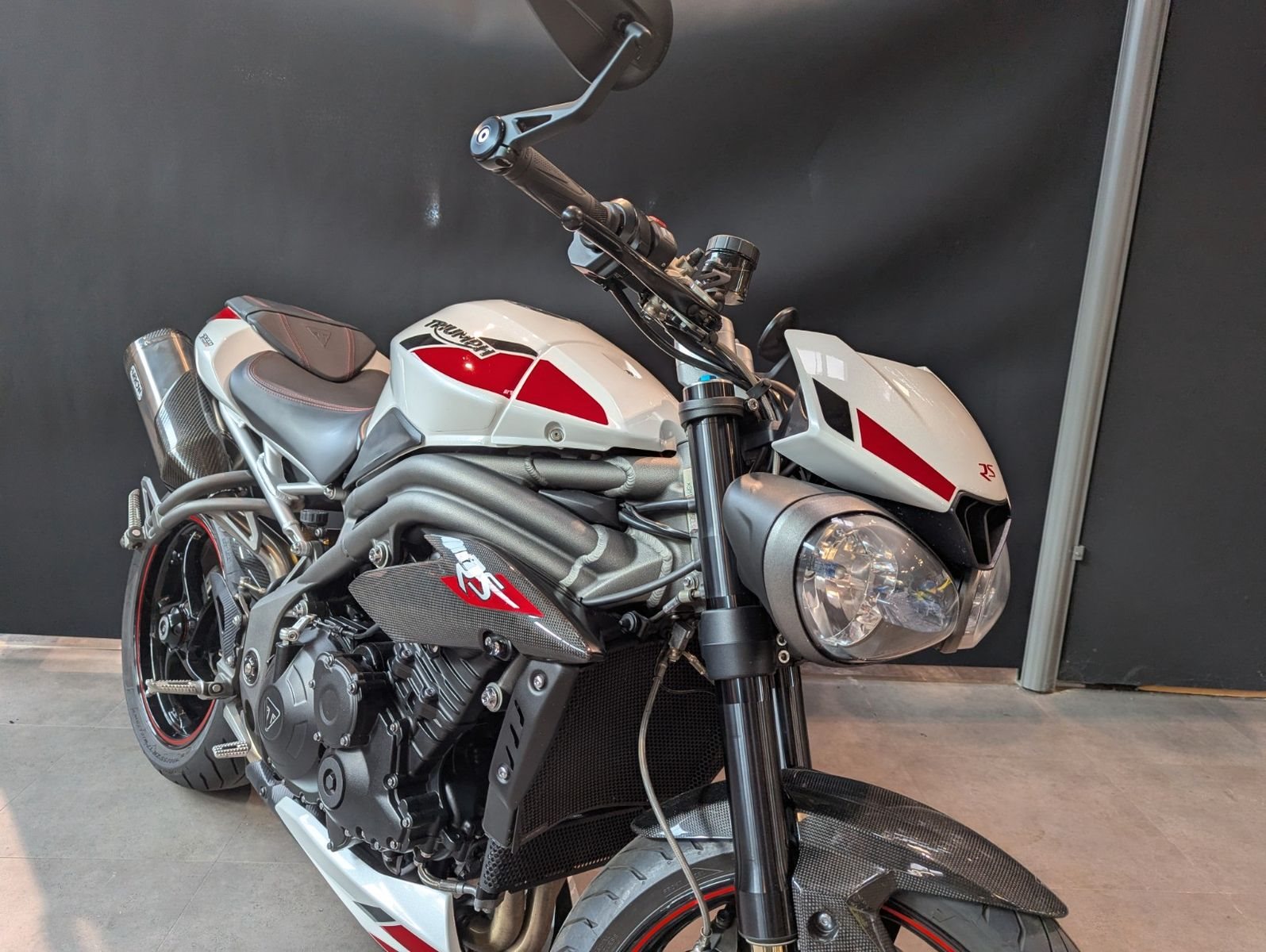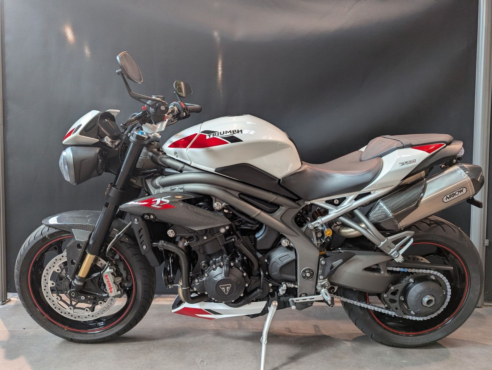 Die Triumph Speed Triple 1050 RS ist ein kraftvolles Naked-Bike mit sportlichem Charakter. Mit ihrem 1050-ccm-Dreizylinder bietet sie beeindruckende Leistung und ein dynamisches Fahrerlebnis. Das moderne Design, kombiniert mit hochwertiger Technik, sorgt für eine aggressive und elegante Optik. Die RS-Version ist speziell für sportliches Fahren und maximale Kontrolle ausgelegt. Ein echtes Highlight für alle, die Performance und Style suchen.