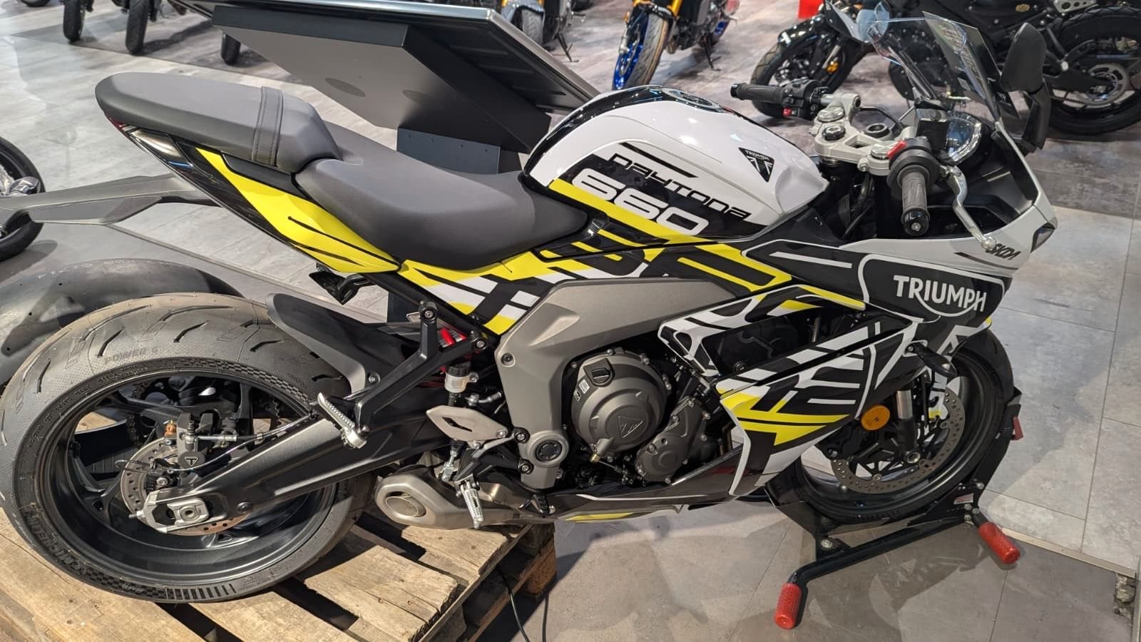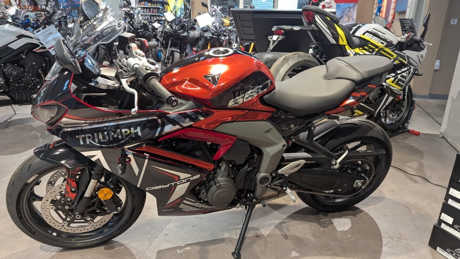 Die Triumph Daytona 660 vereint sportliche Präzision, moderne Technik und den unverwechselbaren Charakter britischer Ingenieurskunst. Mit ihrem 660 cm Dreizylinder-Motor bietet sie eine perfekte Balance aus Drehmoment, Leistung und Agilität ideal für Fahrer, die sportliche Dynamik und Alltagstauglichkeit in einem Motorrad vereint erleben möchten.