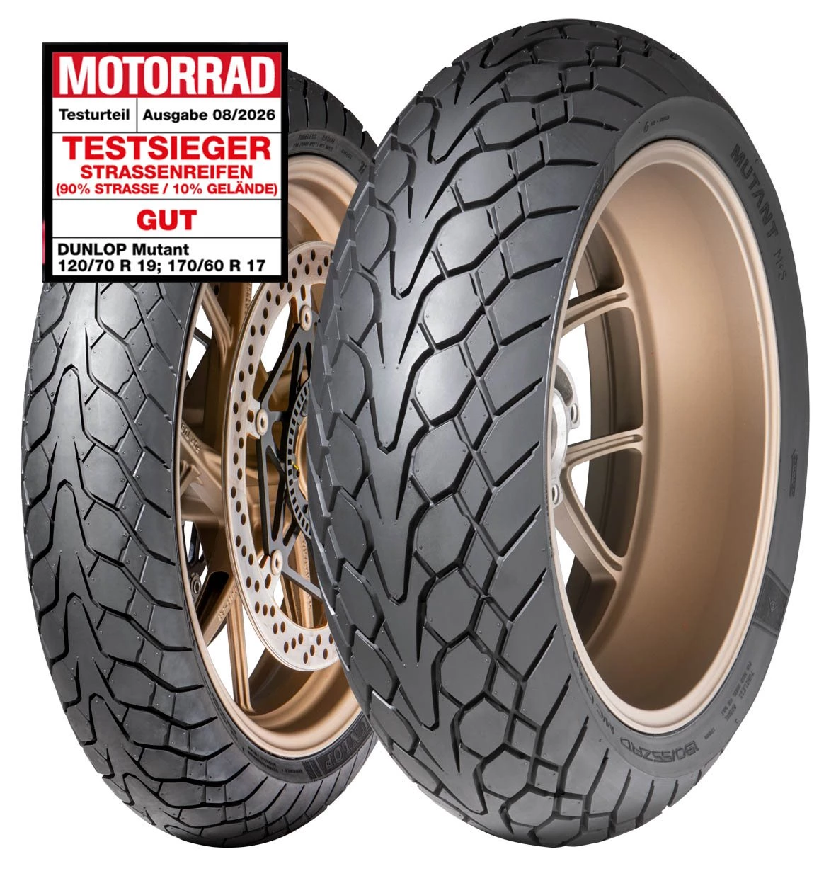 Großartige Neuigkeiten für alle Adventure- und Crossover-Fahrer in Mainfranken! Die Fachzeitschrift MOTORRAD (Ausgabe 08/2026) hat entschieden: Der Dunlop MUTANT ist der souveräne Testsieger im aktuellen 90/10-Reifentest.