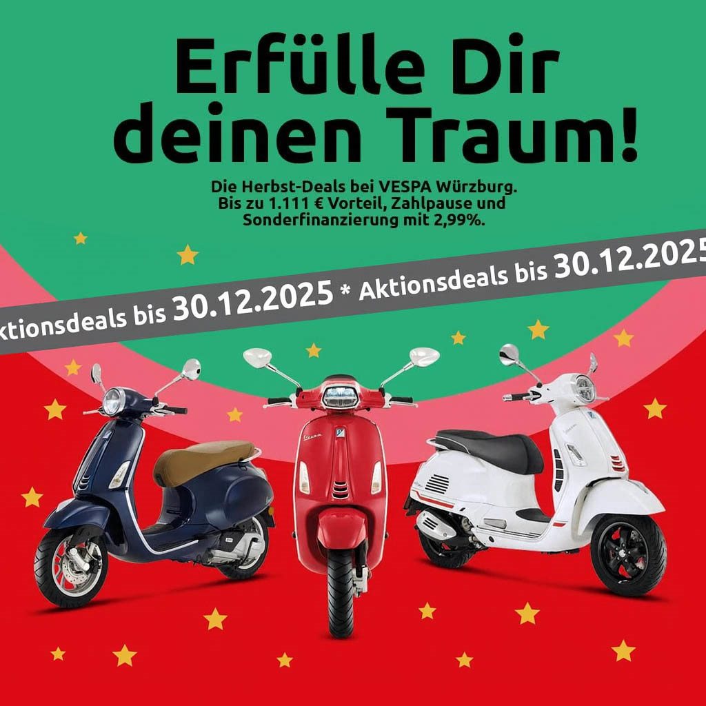 Herbst-Deal für Vespa-Fans bei hmf Würzburg. Jetzt bis zu 1.111 € Preisvorteil sichern!