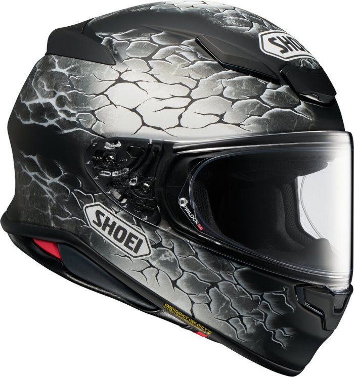 Das für den SHOEI NXR2 neu entwickelte Visier CWR-F2 mit zweidimensionaler Formgebung ermöglicht eine verzerrungsfreie und sehr natürliche Sicht. Verstärkungen am oberen und unteren Visierrand erhöhen die Verwindungssteifigkeit, ein nun mittig angebrachter Verriegelungsmechanismus verhindert das ungewollte Öffnen des Visiers. Es läßt sich dank einer weiterentwickelten Mechanik des Vorgängermodells schnell und werkzeugfrei wechseln und justieren.