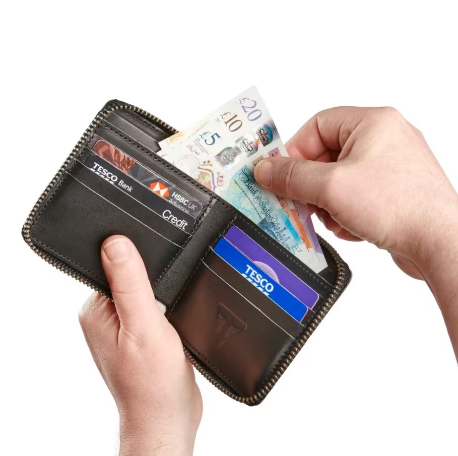 QUADRATISCHE GELDBÖRSE MIT REISSVERSCHLUSS AUS LEDER