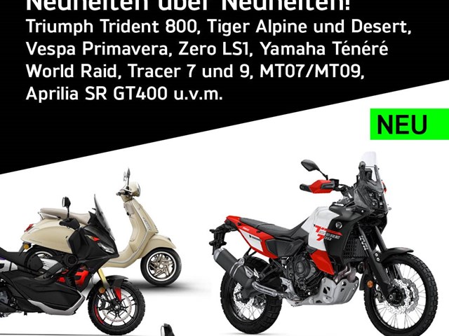 - YAMAHAs Top-Seller Ténéré 700 und Ténéré 700 World Raid in der neuen Version, dazu die neue WR125, Tracer 7 und Tracer 9 und auch die neue R125 als limitierte Version in Racing Dekor - dazu als superpreiswerter Alltagscomuter der vollelektrische Yamaha Neos EV.