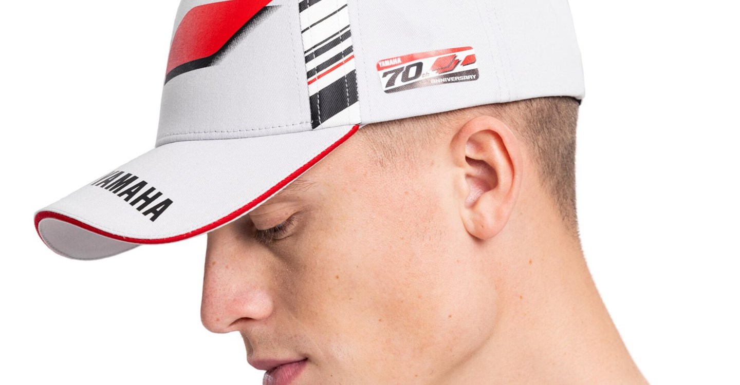 Schütze deine Augen vor der Sonne und zeige deine Leidenschaft für Yamaha mit der Schirmmütze für Erwachsene zum 70-jährigen Jubiläum. Diese weiße Schirmmütze im 5-Segment-Design ist mit einem exklusiven 70-Jahre-Jubiläums-Branding auf der Vorderseite und stylischen Grafiken an den Seiten versehen. Belüftungslöcher und ein einstellbarer Riemen bieten einen Rundum-Komfort für alle Größen.