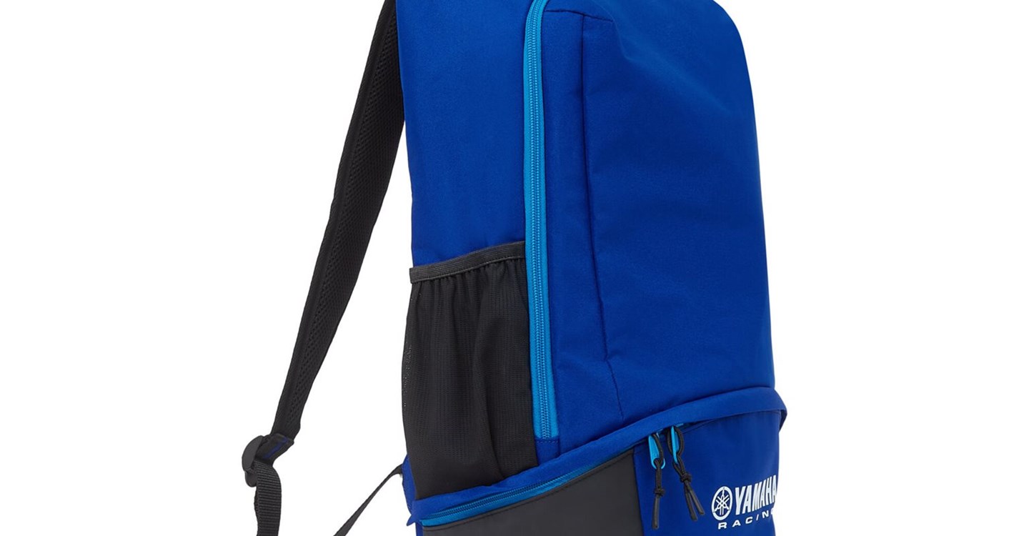 Mit dem Paddock Blue Rucksack hast Du das Wichtigste immer gut verstaut. Der Rucksack im klassischen Yamaha Design mit schlichtem Branding bietet reichlich Stauraum. Ein gepolsterter Rücken sorgt für angenehmen Tragekomfort, einstellbare Gurte und ein Tragegriff bieten zusätzliche Funktionalität.